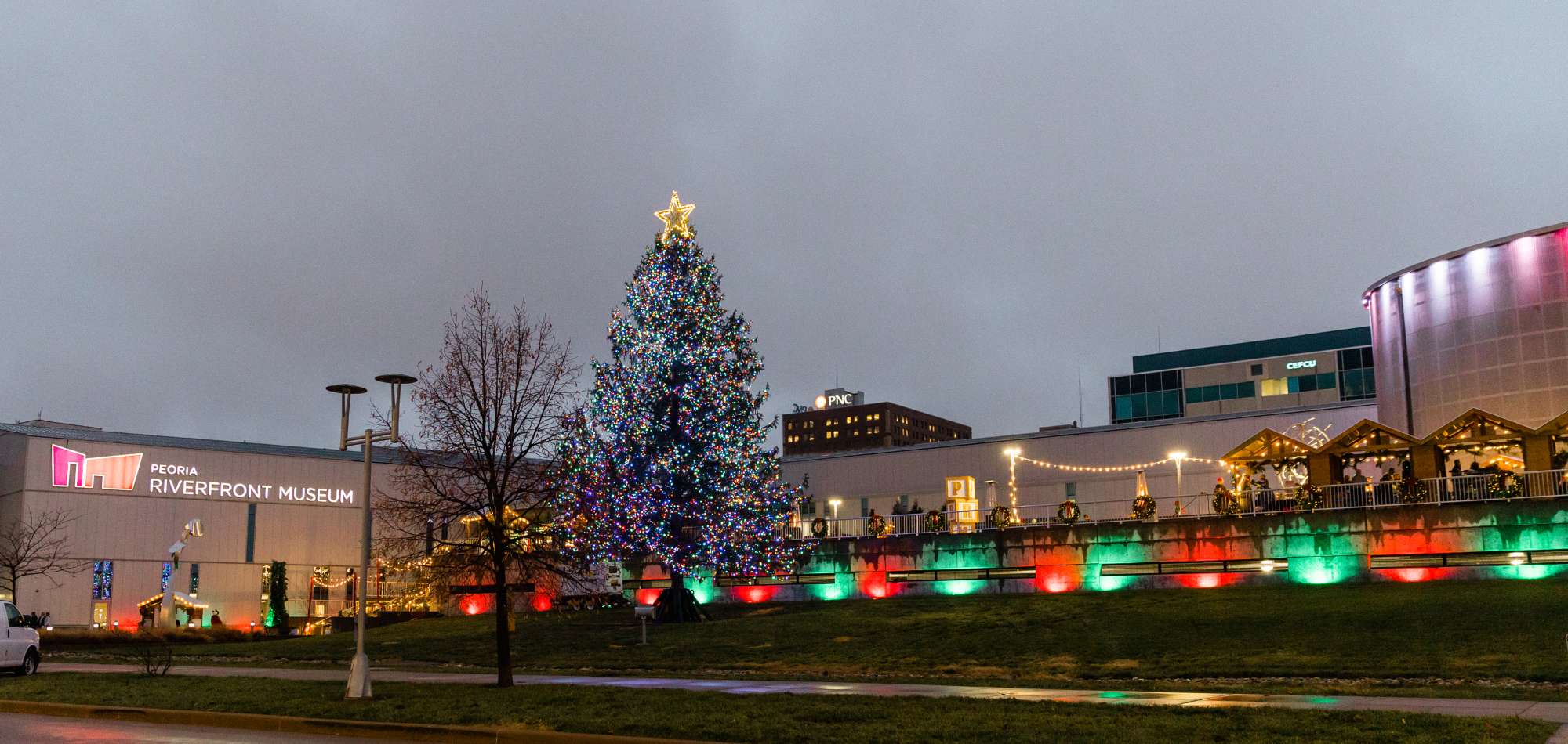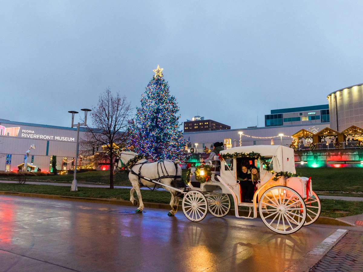 Waltz through the “village” and see Peoria Ballet Nutcracker Ballerinas flit about as you listen to carolers sing, enjoying local food trucks and vendors, sipping hot chocolate or cocktails, and taking pictures with Santa. More festivities include carriage rides, a holiday laser light show, movies in the Giant Screen Theater, live animals, and Peoria’s largest live Christmas Tree, which adds to the magical experience of “Christmas in the Village.”