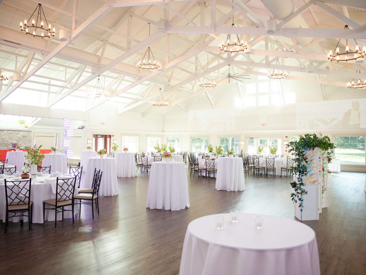 The UMB Bank Pavilion, located on the award-winning Aldeen Golf Course, offers 5,000 square feet of event space accommodating up to 300 guests. The venue features a fully equipped kitchen and banquet bar, exclusively catered by GioEvents.