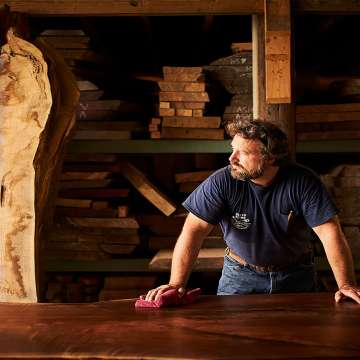 L'alto livello dei mobili di Stine Woodworking ha fatto crescere la domanda per l'ampia varietà di manufatti originali e riccamente lavorati che ora si trovano nelle case di collezionisti, celebrità e gente del posto. Dai letti alle panche, dai tavolini ai comò, le creazioni in legno duro di David rivelano tanto dell'uomo quanto del legno della sua gestione responsabile. Un viaggio nel suo negozio di legno e nel suo studio, nella cittadina meridionale di Dow, è una lezione su come trasformare i sogni in realtà.