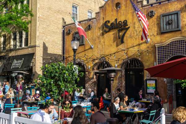 Arlington Alfrescoè una zona di ristorazione e shopping all'aperto nel centro di Arlington Heights che consente a ristoranti, negozi e aziende di espandere la propria capacità in zone designate all'interno dell'area di Arlington Alfresco. Con i suoi innumerevoli negozi e botteghe, Arlington Alfresco è una destinazione da non perdere. Consigliamo di cenare alHey Nonny, dove la cucina americana si sposa perfettamente con il gusto della musica. Con spettacoli a pagamento sei sere a settimana, potete sempre contare su questo ristorante per un'esperienza unica e memorabile. Dopo aver mangiato, non dimenticate di girare l'angolo per scattare una foto indimenticabile al nuovo tendone del Metropolis Performing Arts Centre.