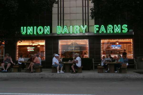 Prima di mettersi in viaggio, pranzate da Union Dairyla gelateria più famosa di Freeport. Scegliete da un menu salato che include tutto, dai 51 gusti di gelato vecchio stile agli hamburger, agli hot dog in stile Chicago e alle cagliate di formaggio.