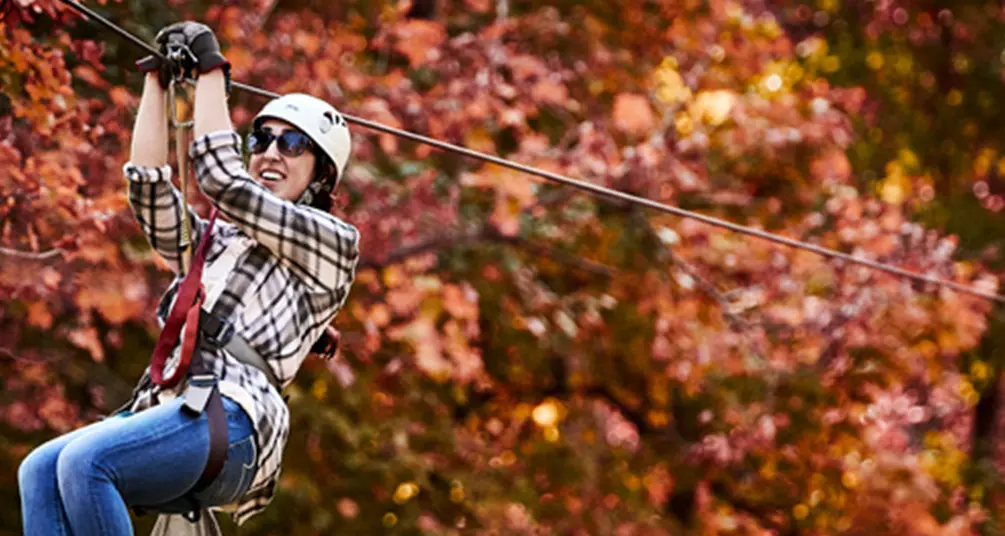 Chi ha detto che lo ziplining è un'attività solo estiva? Preparatevi a far battere il cuore in autunno e a far cadere la mascella mentre sfrecciate di spettacolare bluff in spettacolare bluff a Grafton Zipline. Questa epica avventura a baldacchino offre alcune delle viste più impressionanti della natura incontaminata della Shawnee National Forest. Chi si sente particolarmente impavido apprezzerà in particolare il salto di 250 metri della linea Soaring Eagle e la velocità massima di 45 miglia orarie della linea Creek Hopper.