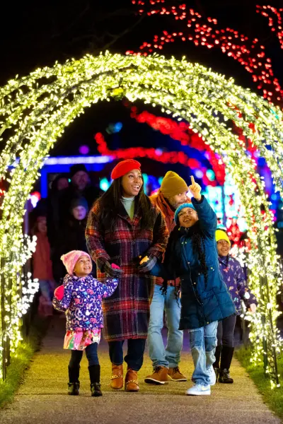 Se volete far sorridere i bambini, prendete subito i biglietti per Lightscape al Chicago Botanic Garden. Questo incantevole percorso illuminato dopo il tramonto è aperto dal 14 novembre 2025 al 4 gennaio 2026. Godetevi cibi e bevande festosi e immergetevi in un mondo di musica, colori e luci.