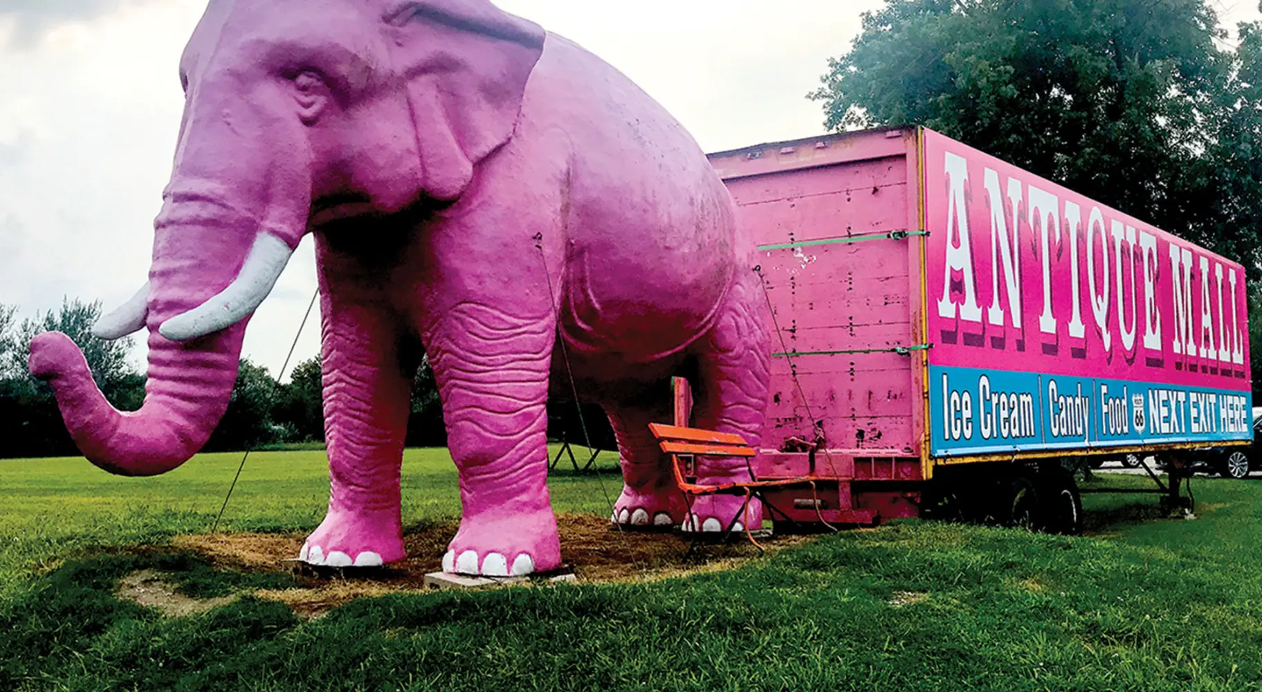 Il Pink Elephant Antique Mall è un'eccentrica e imperdibile tappa lungo la Route 66 a Livingston, Illinois. Ospitato in una ex scuola superiore, questo vasto tesoro ospita oltre 50 venditori che offrono di tutto, da mobili vintage e oggetti da collezione a reperti rari e cimeli nostalgici. All'esterno, statue di grandi dimensioni, tra cui l'iconico elefante rosa, danno un tono giocoso, mentre la tavola calda e il negozio di dolciumi retrò in loco rendono facile trascorrere un pomeriggio di esplorazione. È in parte un'attrazione stradale, in parte il paradiso dei cacciatori di antichità, e tutto ciò che è affascinante.